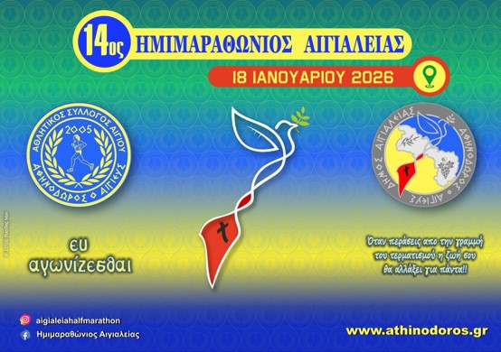 Ο Αθλητικός Σύλλογος Αιγίου «ΑΘΗΝΟΔΩΡΟΣ Ο ΑΙΓΙΕΥΣ», με την υποστήριξη της Αντιδημαρχίας Πολιτισμού – Αθλητισμού του ΔΗΜΟΥ ΑΙΓΙΑΛΕΙΑΣ, διοργανώνει τον 14ο Ημιμαραθώνιο Αιγιαλείας, καθώς και παράλληλους αγώνες 5χλμ και 1,5χλμ.