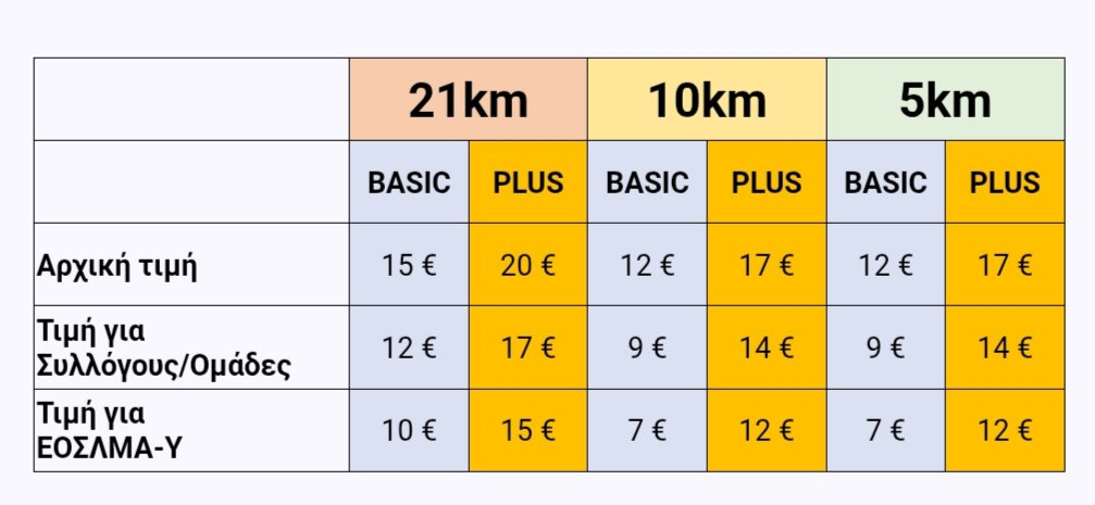 Το αντίτιμο συνδρομής συμμετοχής ανά Αγώνα Δρόμου φαίνεται στον παρακάτω πίνακα: